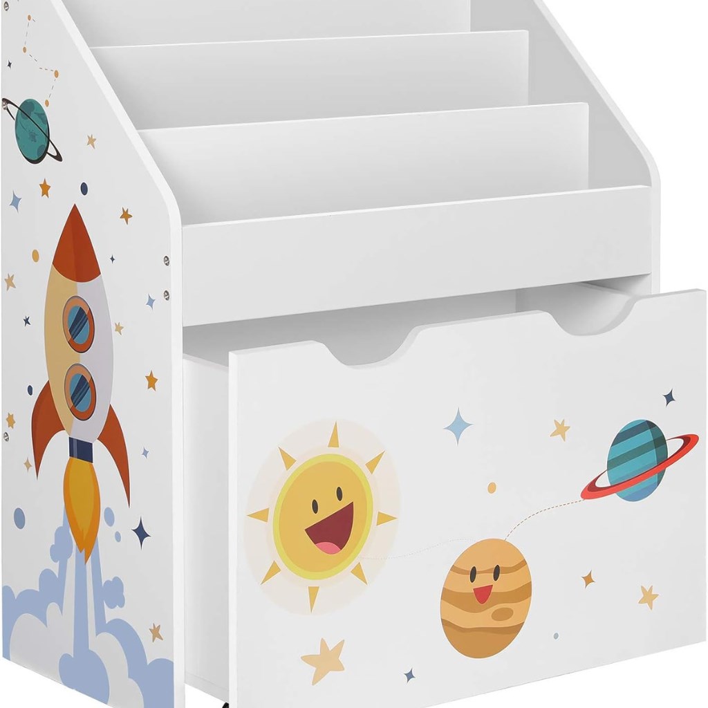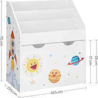 Komoda, která se dokonale hodí k barvám dětského pokoje nebo herny. Skládá se ze 3 přihrádek na knihy a 1 prostorné zásuvky na hračky nebo jiné drobnosti. Komoda usnadní třídění hraček, knih nebo jiných předmětů vašeho dítěte.