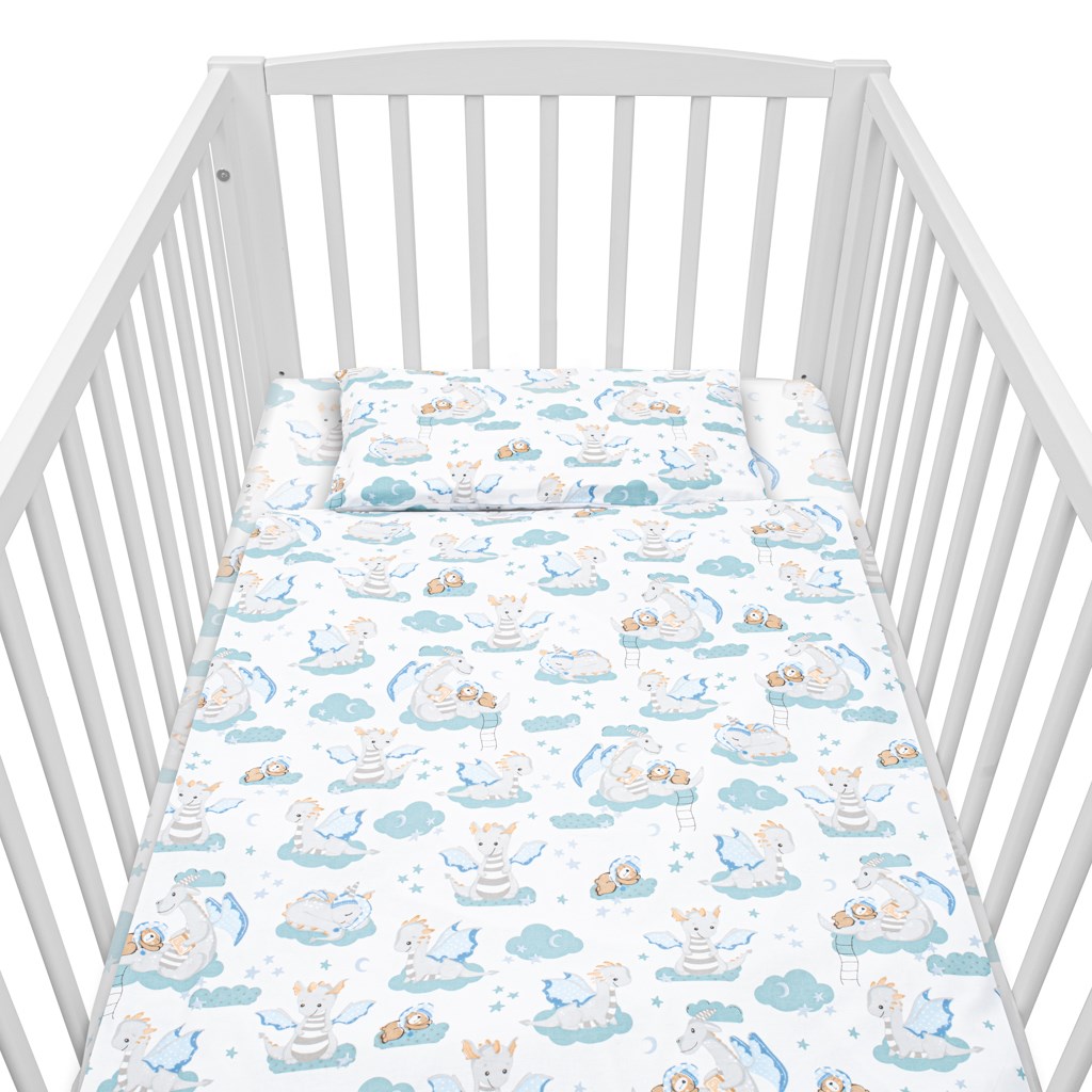 Dětská 2-dílná souprava do postýlky New Baby Dráček je produktem české značky New Baby. Souprava je vyrobena ze 100% bavlny. Kvalitní provedení a nádherný detský motiv. Obsahuje povlečení na polštářek cca 40x60 cm + povlečení na peřinku cca 120x90 cm. Materiál 100% bavlna.