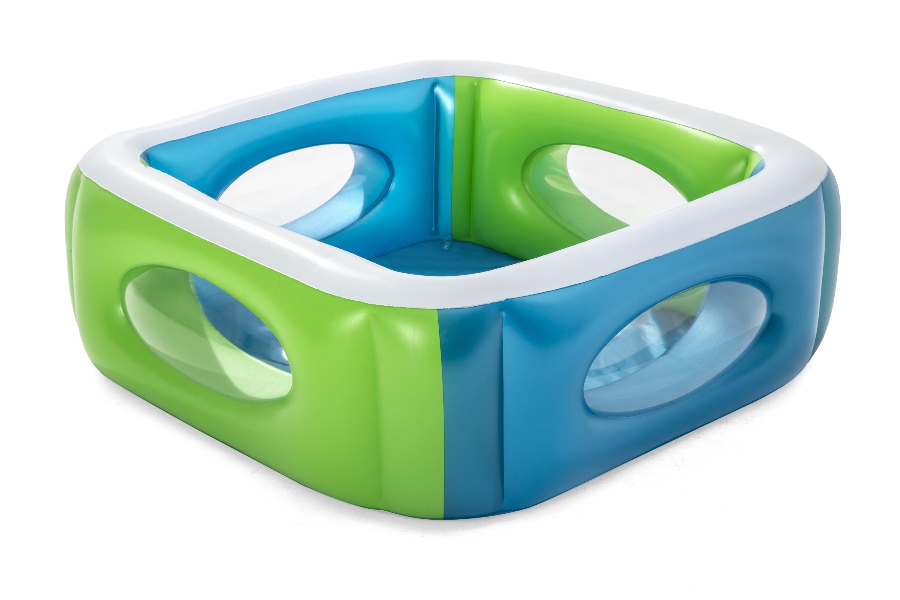 Nafukovací bazén BESTWAY Window 168 x 56 cm. Dětský nafukovací barevný bazén s průhlednými okny po obvodu. Rozměr: 168 x 168 x 56 cm, objem bazénu při naplnění 75%: 565 litrů. Vypouštěcí ventil, síly stěn a podlahy 0,29 mm.