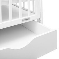 Postýlka je vybavena zásuvkou, která je k postýlce připevněna kuličkovými pojezdy, nedotýká se země. Je možné ji zcela vyjmout a znovu vložit.