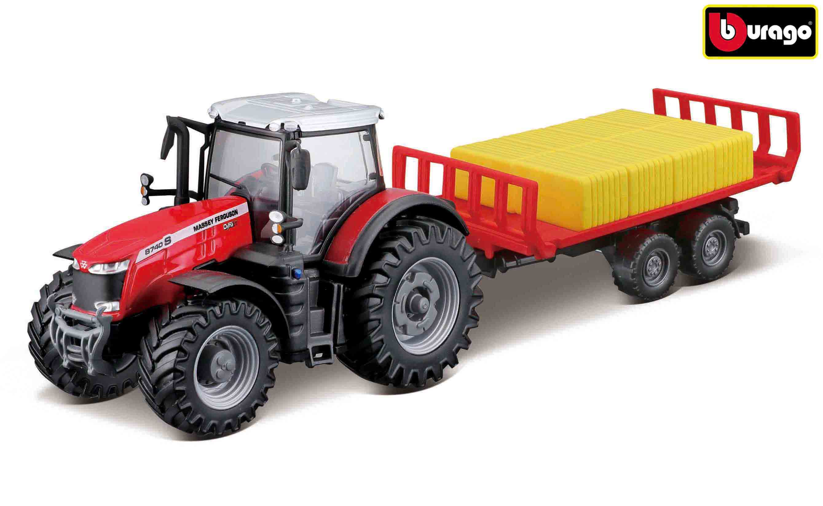 Bburago 10cm Farm tractor Messey Ferguson 8740S s přívěsem na balíky