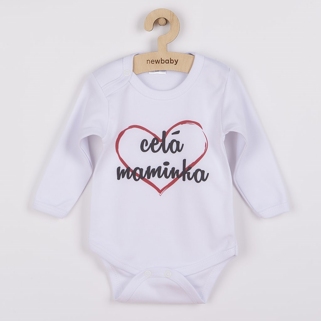 Originální bavlněné kojenecké body s dlouhým rukávem New Baby, s vtipným nápisem celá maminka. Barvy použité k potisku jsou certifikované a vhodné pro miminka. Je vyrobeno z příjemného a kvalitního materiálu, ve kterém se bude Vaše miminko cítit příjemně. Body má zapínáni na cvočky na ramínku a mezi nožičkami, což usnadňuje oblékání a přebalování. Dopřejte Vašemu miminku vyniknout v originálním body. Složení: 100% bavlna. Rozměry: obvod kolem hrudníku cca 34 cm, délka rukávu cca 16 cm, celková délka cca 30 cm.