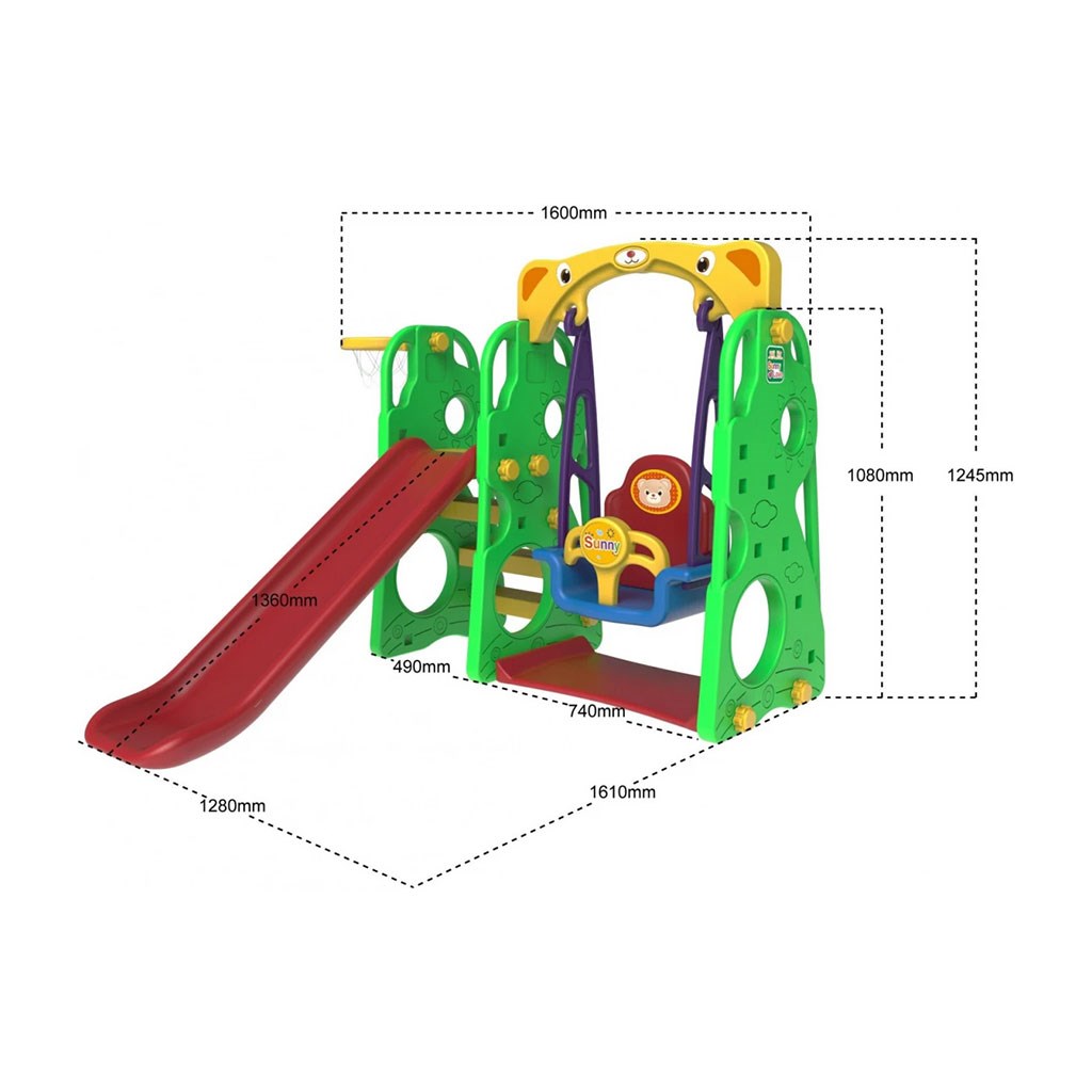 Dlouhá skluzavka z dvojité vrstvy plastu umožňuje rychlou a bezpečnou jízdu. Široké, protiskluzové schůdky usnadňují vstup a sestup. Basketbalový koš s vhodně umístěnou sítí a přiloženým míčem přidává další prvek zábavy. Konstrukce hřiště umožňuje přizpůsobení uspořádání podle potřeb dětí.