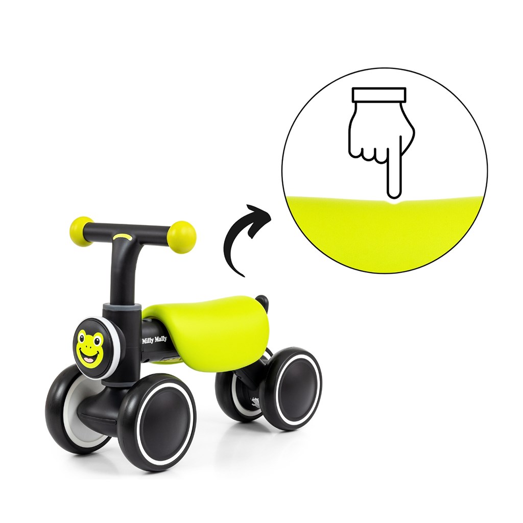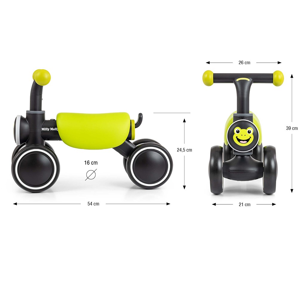 Odrážedlo se snadno montuje, je stabilní a bezpečné. Doporučuje se pro děti ve věku 12–36 měsíců a o hmotnosti do 25 kg.