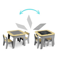 Dětská sada nábytku Olaf Blocks - stůl a dvě židličky je multifunkční komplet navržený tak, aby zajistil dětem pohodlí a prostor pro kreativní hraní a učení. Stůl s dvěma židličkami má decentní barevné provedení, které mu dodává moderní a estetický vzhled, hodící se do každého interiéru.