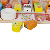 SENZORICKÝ ROZVOJ – textura a hmotnost dřevěných dílků poskytují smyslové podněty a stimulují hmatové vnímání dítěte, podporují rozvoj správného úchopu. Skládání zmrzlinových kornoutů a lepení nanuků na suchý zip pomáhá cvičit prstíky a trénovat trpělivost.