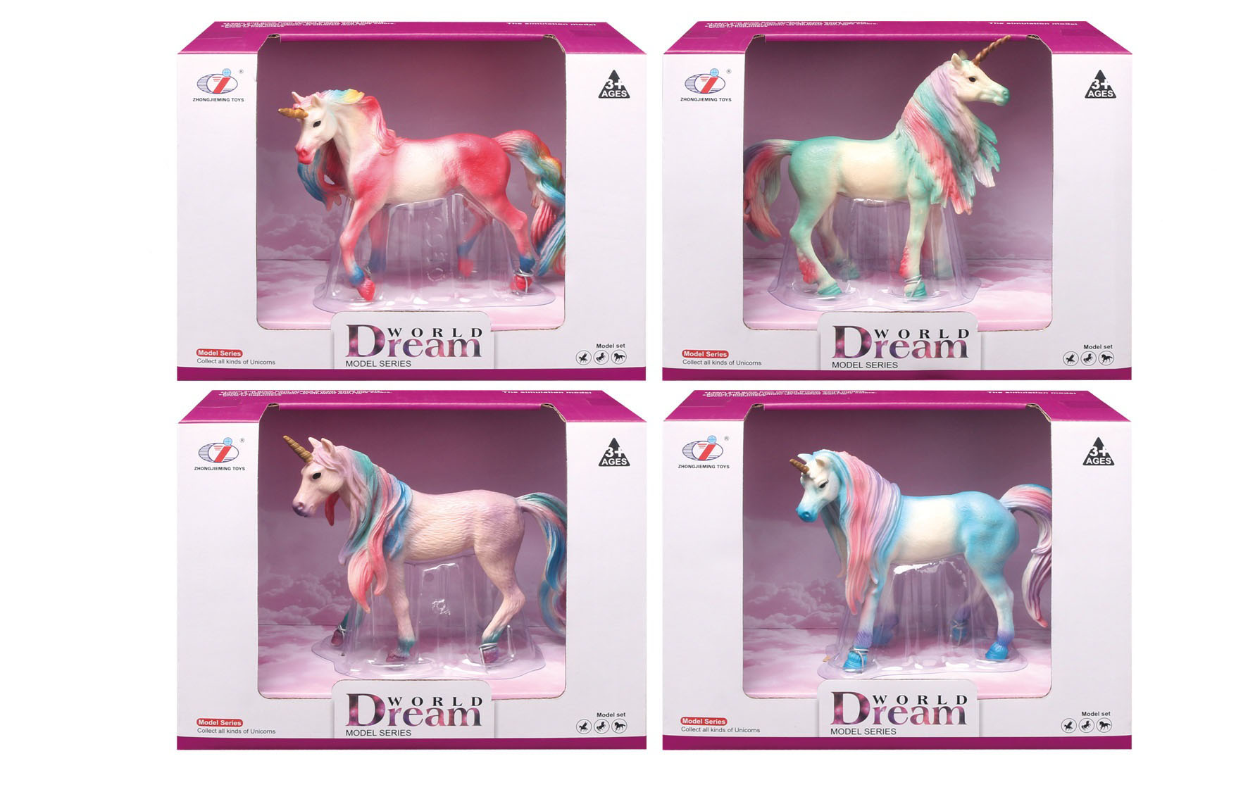 Figurka jednorožec. Velikost 14 cm. 4 varianty - modrý, zelený, červený, růžový.