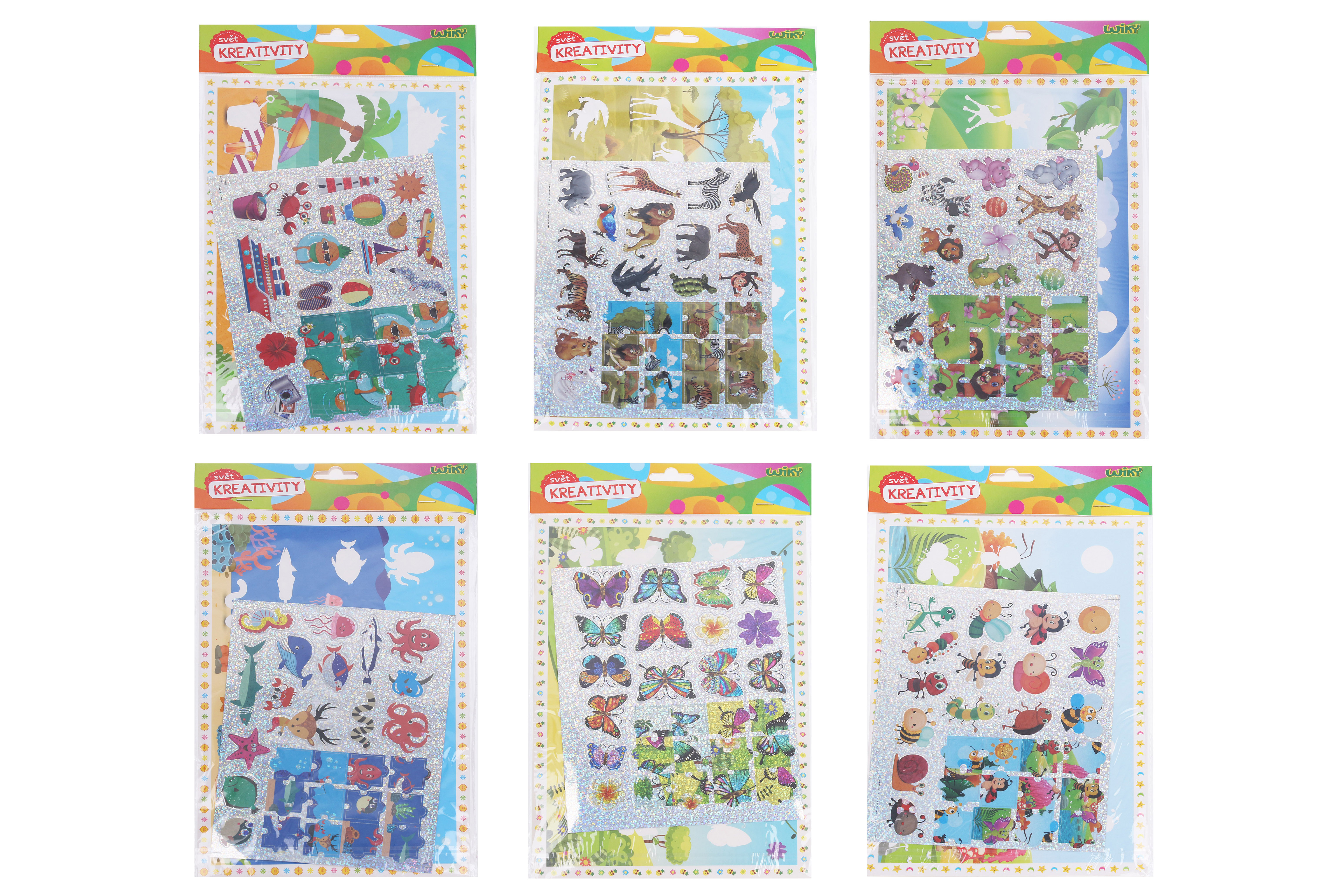 Kreativní set 2v1 o velikosti 20x34 cm. Nálepky + část na vykreslení Mix motivů