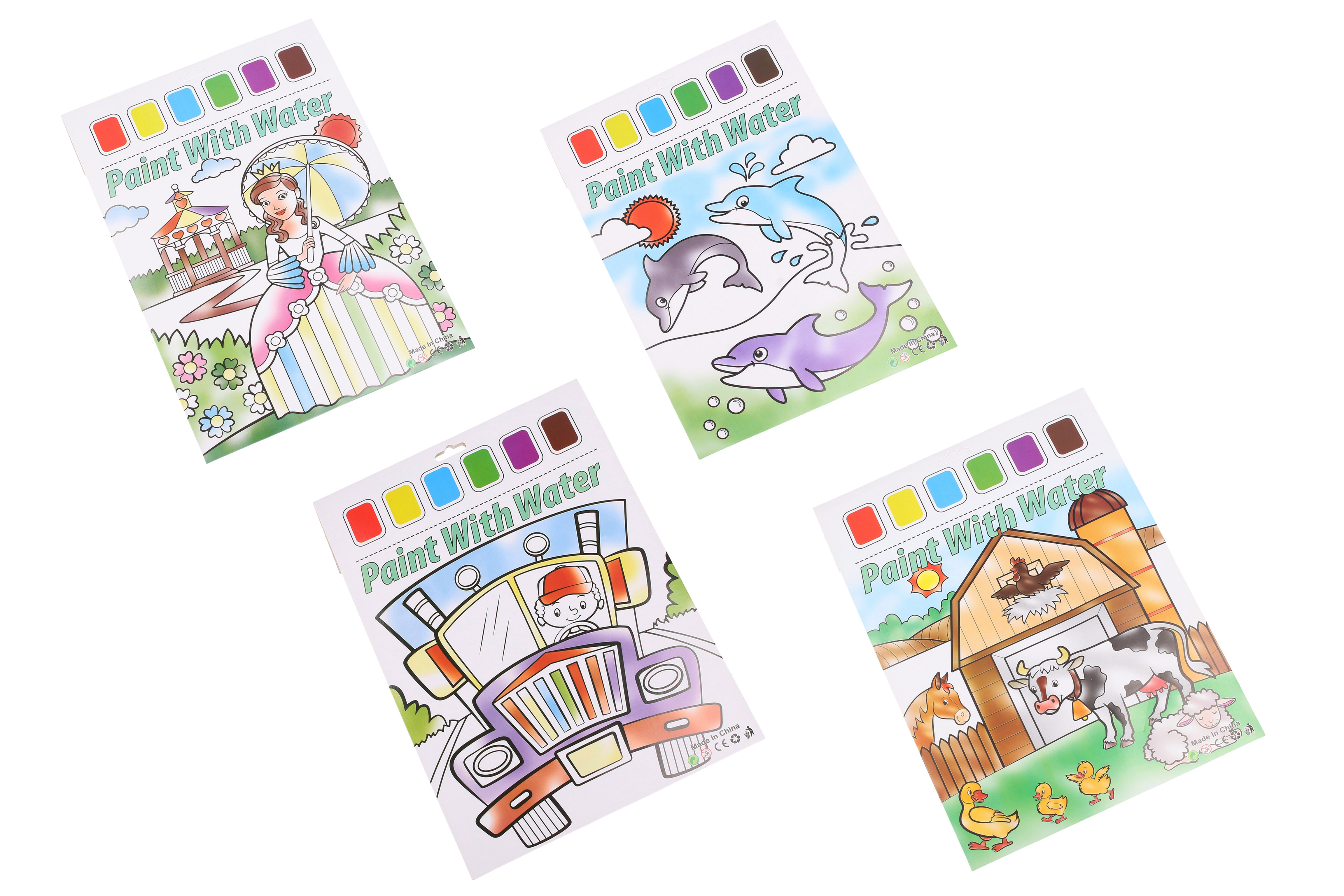Kreativní set pro malování. Obsahuje 6 barev + štětec a 6 různých obrázků na vymalování.