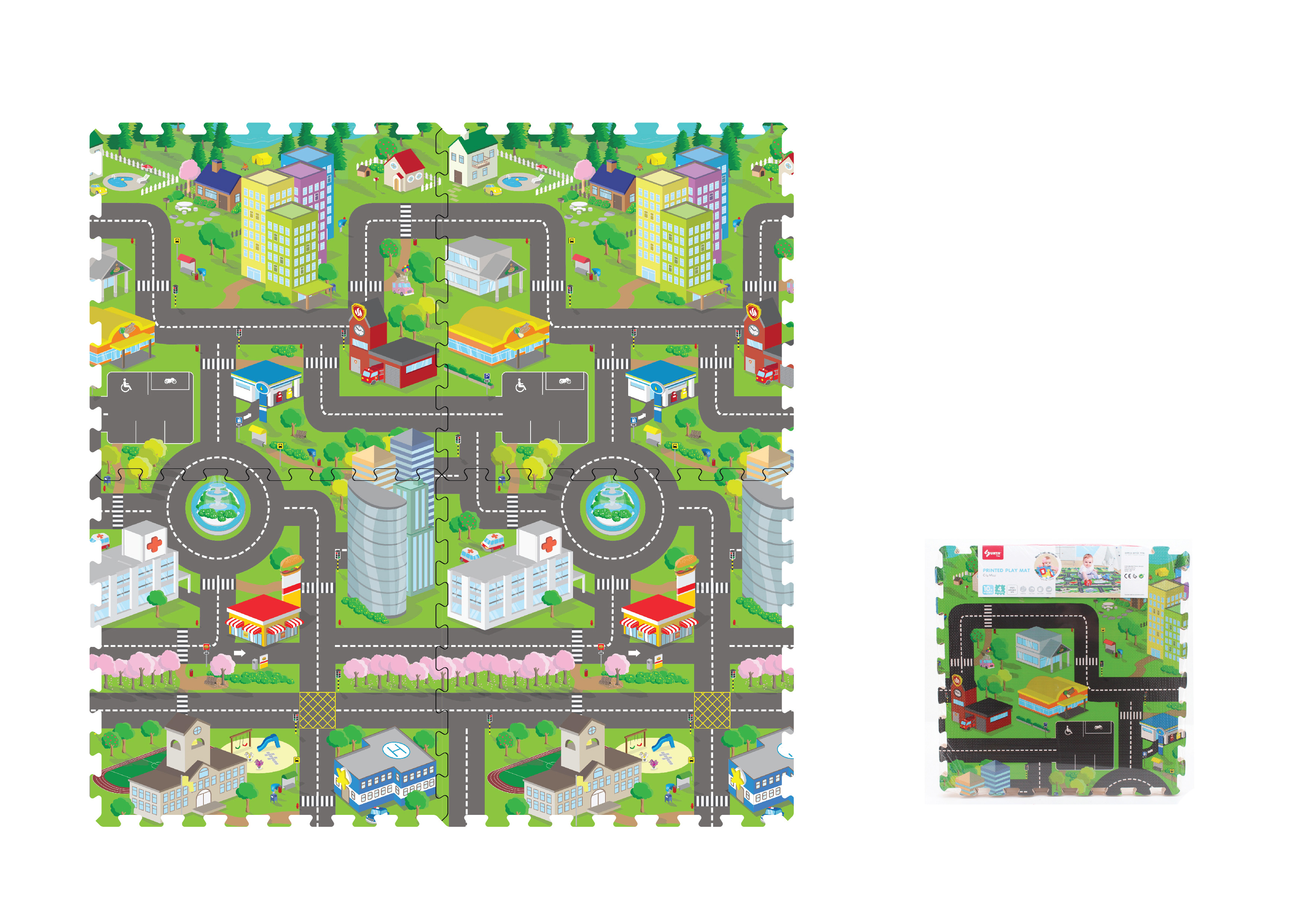 Postavte dětem město v podobě pěnového koberce - puzzle o velikosti 118 x 118cm.