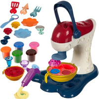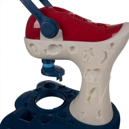 MIXÉR + STŘÍKAČKA – sada obsahuje mixér, který se po stlačení páky otáčí a vytváří razítka na sušenky nebo muffiny. Není potřeba velká síla, takže si s ním poradí každé dítě. Součástí je také stříkačka na vytlačování těsta z modelovací hmoty.