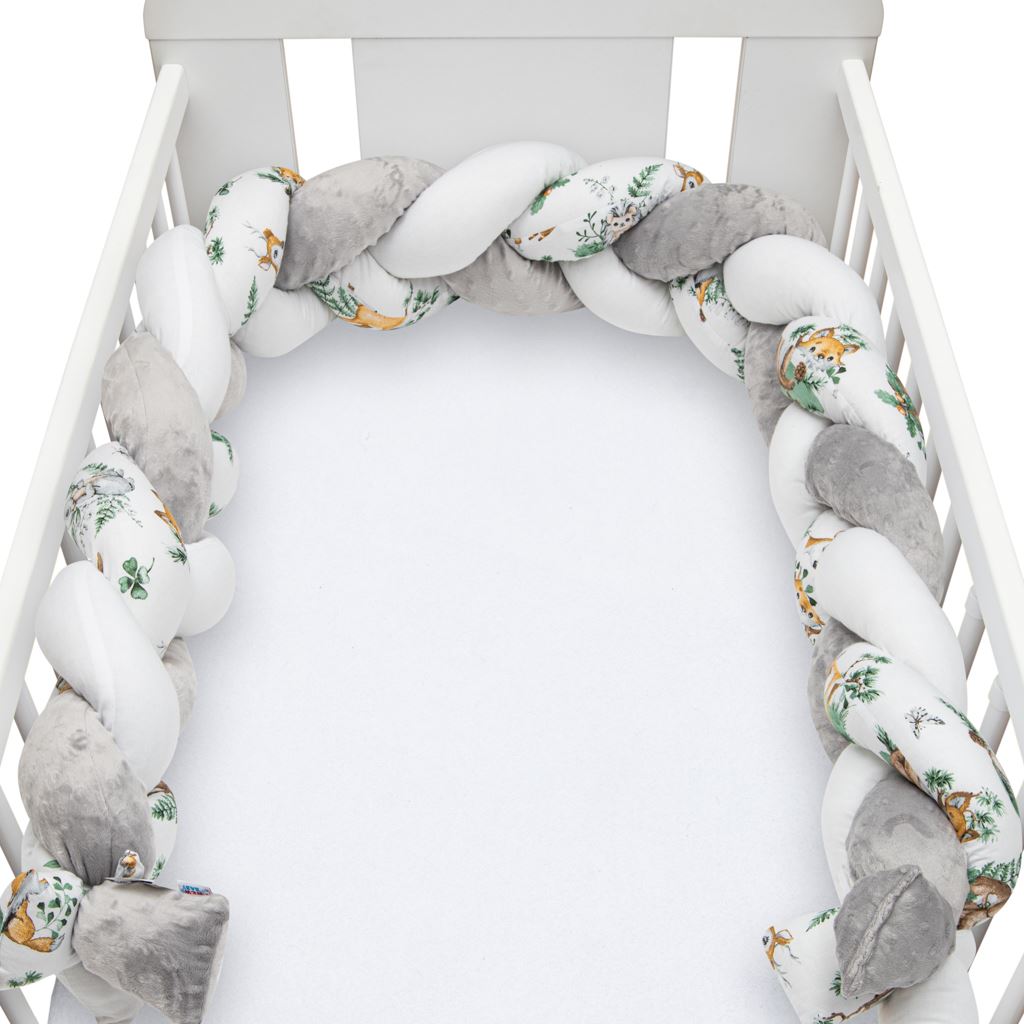 Heboučký a praktický pletený cop české značky New Baby je moderní alternativou tradičního nebo polštářového mantinelu nejen do dětské postýlky. Všechny tři prameny jsou vyrobeny z velmi kvalitního bavlněného materiálu, minky a antialergické polyesterové výplně a ručně spletené do copu. Můžete jej použít v postýlce, kolébce, kde chrání dítě před tvrdými příčkami postýlky a izoluje od studené stěny. Ve vaší posteli splní funkci hnízdečka, kdy miminko jednoduše ovinete pro ještě větší pocit bezpečí a pohodlí. Mantinel se přizpůsobí každé postýlce a pomocí tří přiložených stuh jej snadno upevníte. Starší dítě jej může využívat pro zábavu nebo jako originální dekoraci dětského pokoje.