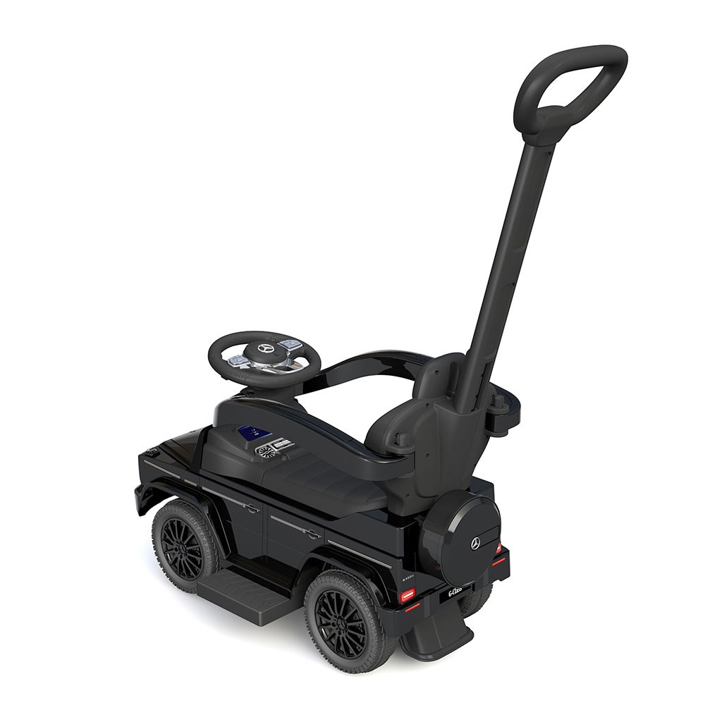 Dětské odrážedlo s vodící tyčí Mercedes Benz G63 Baby Mix je vyrobené z kvalitního plastového materiálu. Jeho sportovní vzhled upoutá pozornost nejen každého dítěte, ale i rodiče. Váš malý závodník či závodnice se v něm bude cítit jako v opravdovém mercedesu. Odrážedlo pomáhá rozvíjet motorické schopnosti dítěte a zaručí mu spoustu zábavy a legrace. Jezdítko má na volantu dvě tlačítka s efektní houkačkou a melodiemi. Odrážedlo je určeno jak pro nejmenší děti, které umí sedět, tak i pro děti, které se už naučily chodit. S autíčkem si děti užijí spoustu legrace a zábavy protože má nenapodobitelný vzhled skutečného Mercedesu, komfortní široké sedadlo s úložným prostorem, volant, kvalitní plastová kola a pohodlnou a zároveň pevnou vodící tyč, kterou lze řídit autíčko. Vodící tyč, opěrky na ruce a podnožky lze sundat, a tím dítě využije autíčko jako klasické odrážedlo. Baterie nejsou součástí balení (2x AA 1.5V).