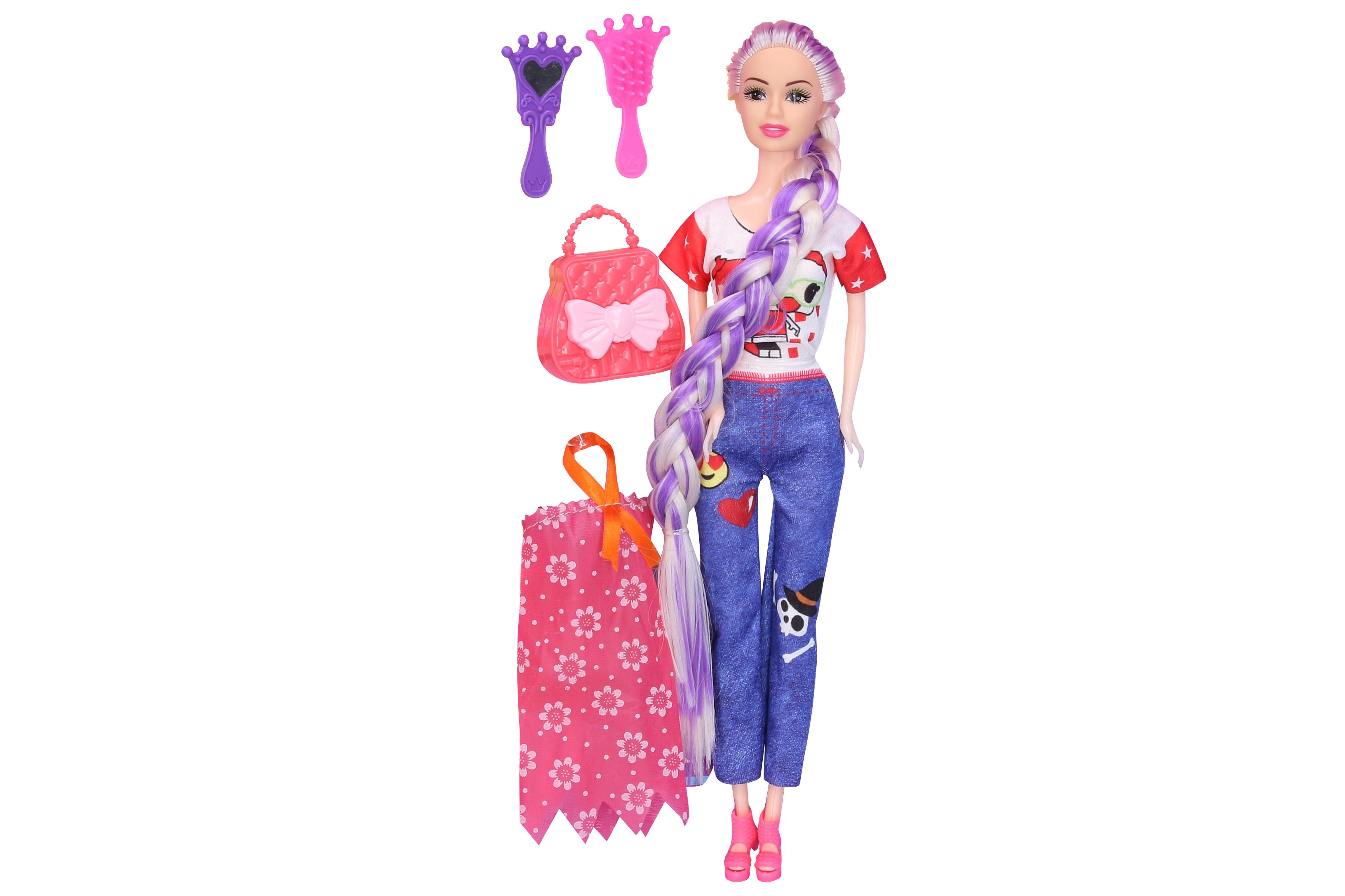 Panenka s kabelkou. velikost panenky 29cm. Obsahuje: panenku, kabelku, hřeben, zrcátko, šaty