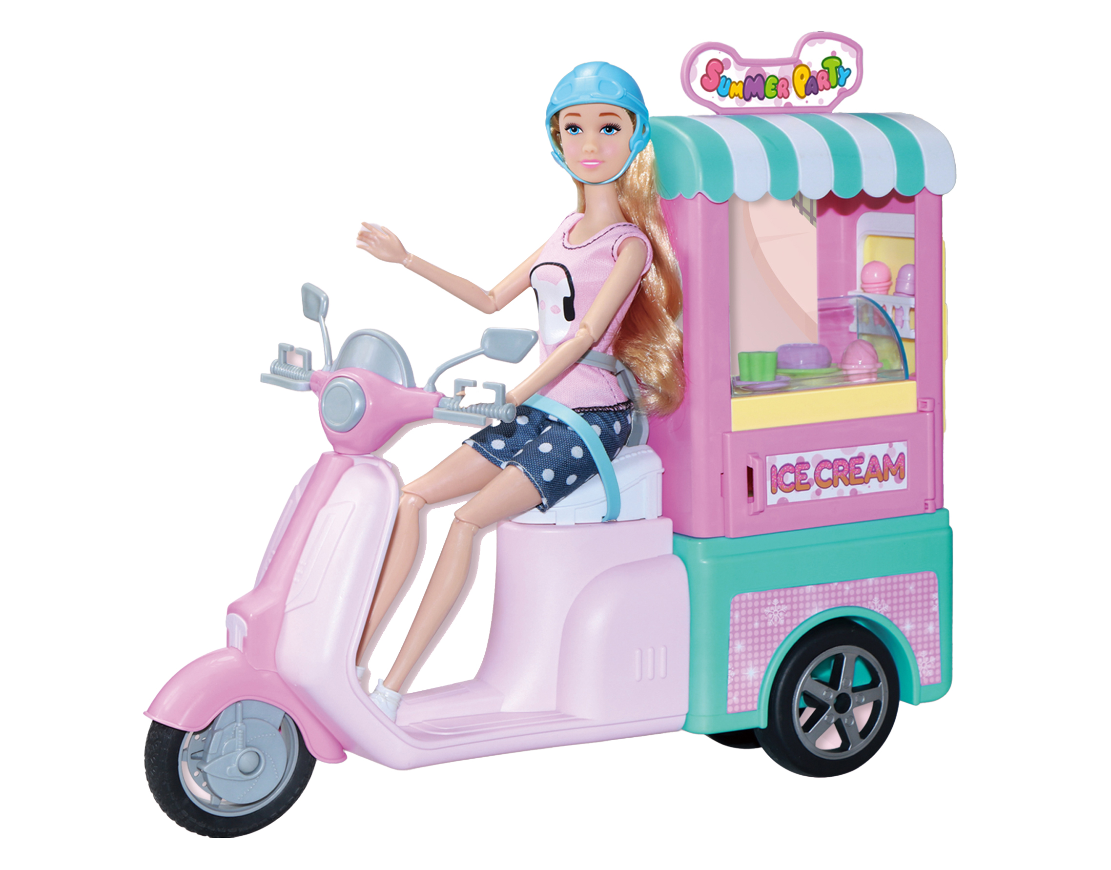 Panenka zmrzlinářka. Velikost 30cm. Obsahuje panenku, zmrzlinářský skútr. helmu, doplňky.