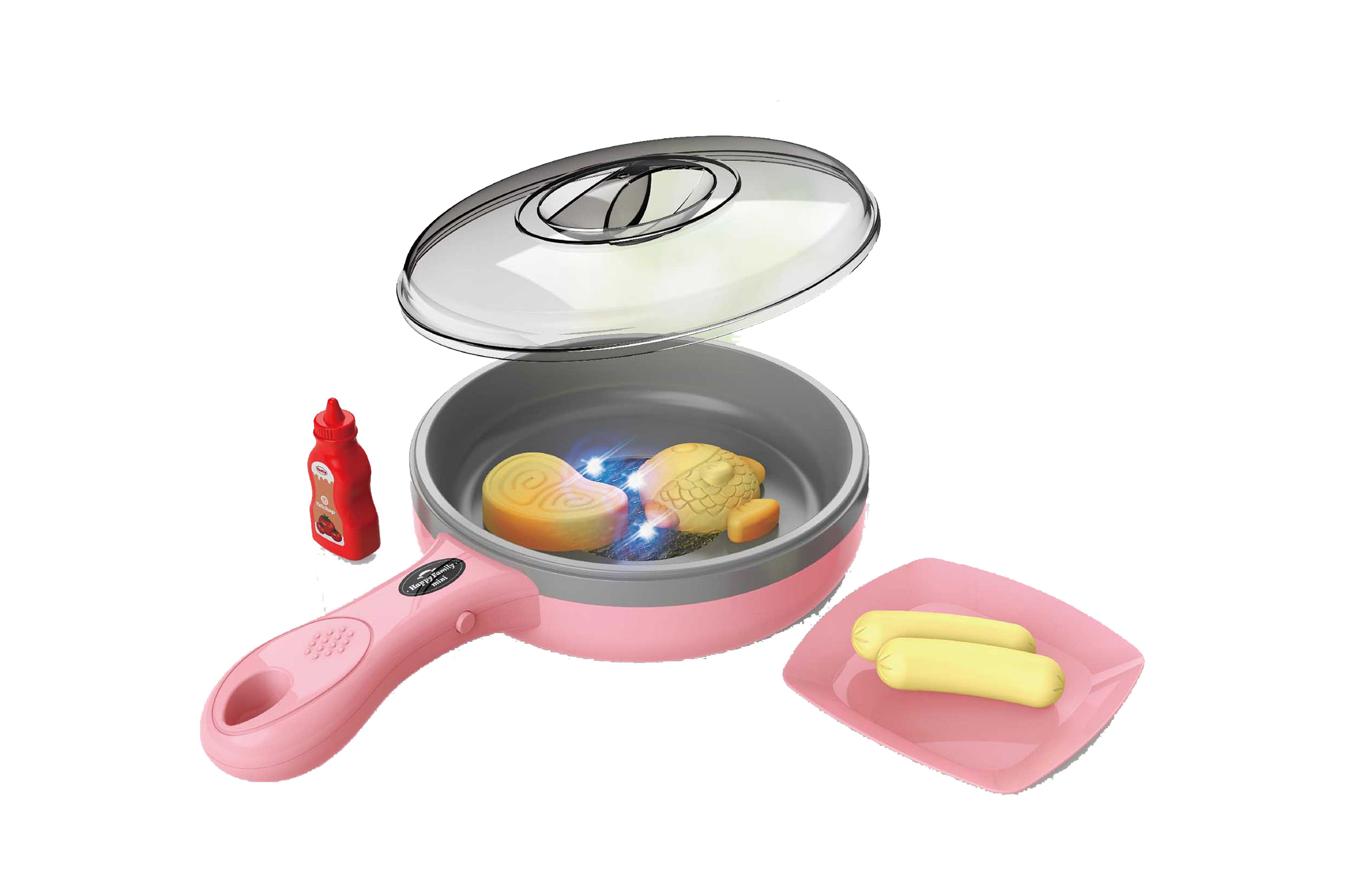 Pánev elektronická. Velikost 27,5x16x7 cm. Během smažení potraviny mění barvu. Obsahuje pánev, pokličku, talířek, kečup, 4ks potravin. Světelné a zvukové efekty. 2xAAA baterie nejsou součástí.
