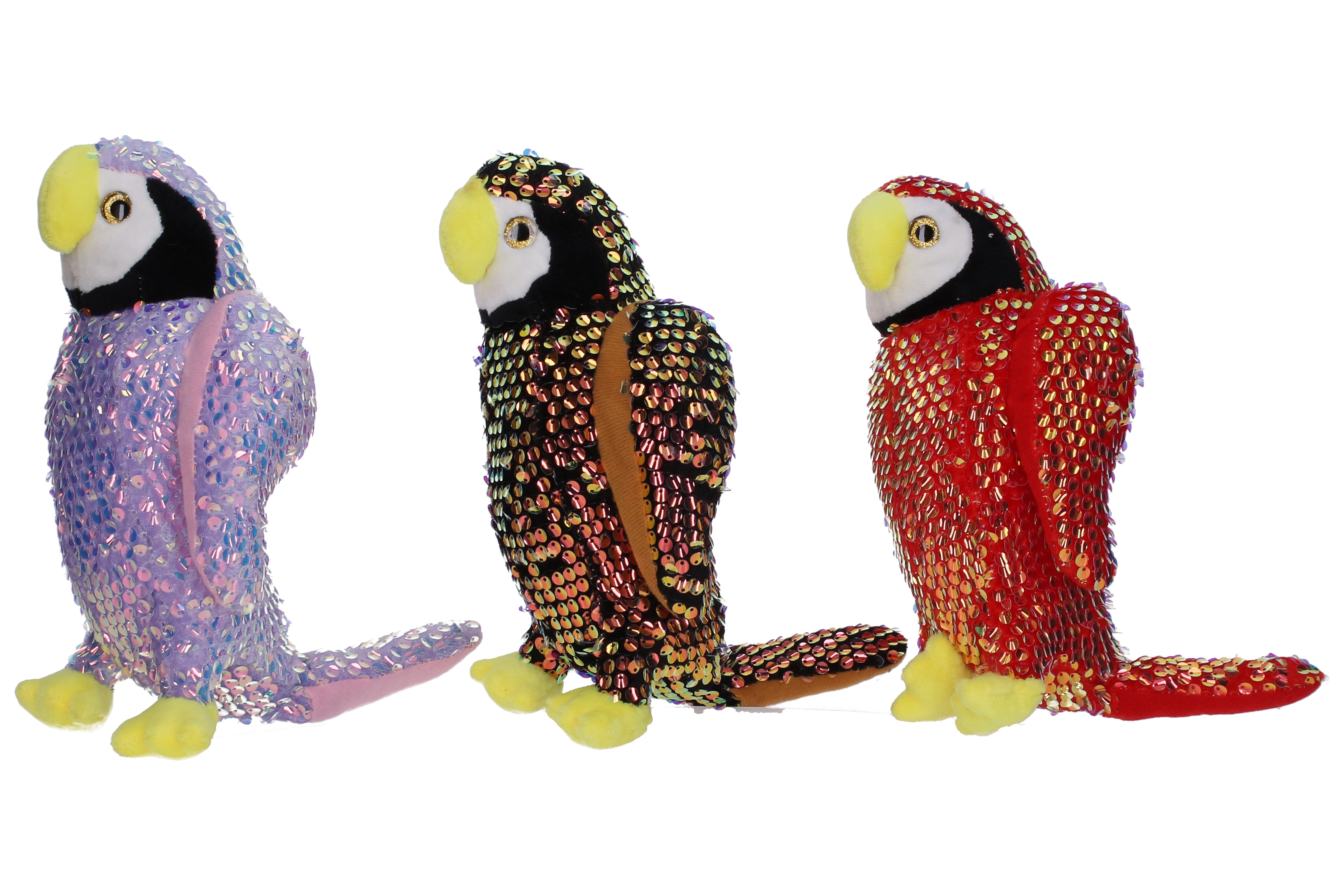 Plyšový papoušek s flitry. Velikost 25cm. 3 varianty