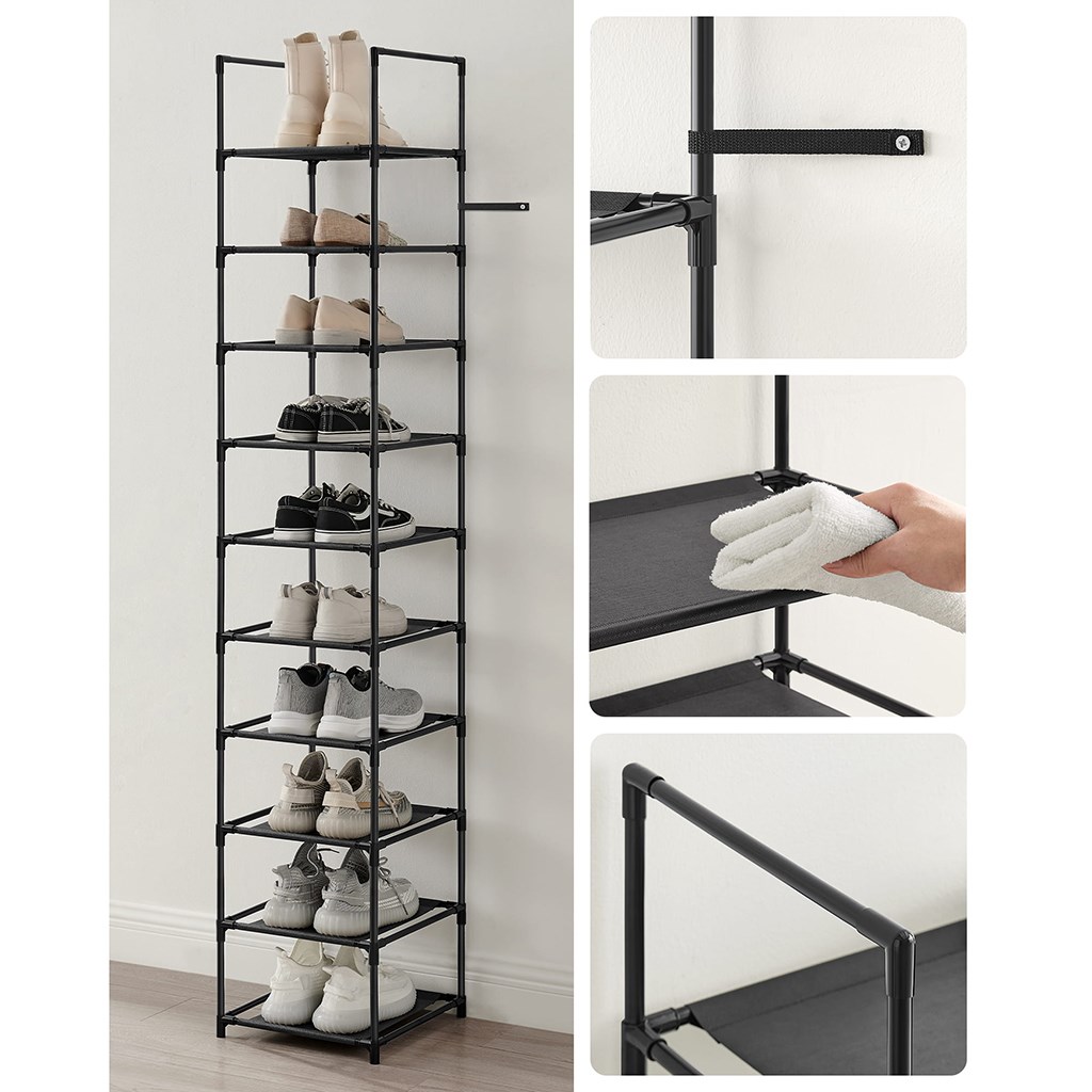 Stojan obsahuje 10 polic na boty, které v závislosti na velikosti vašich bot pojmou až 10 párů.