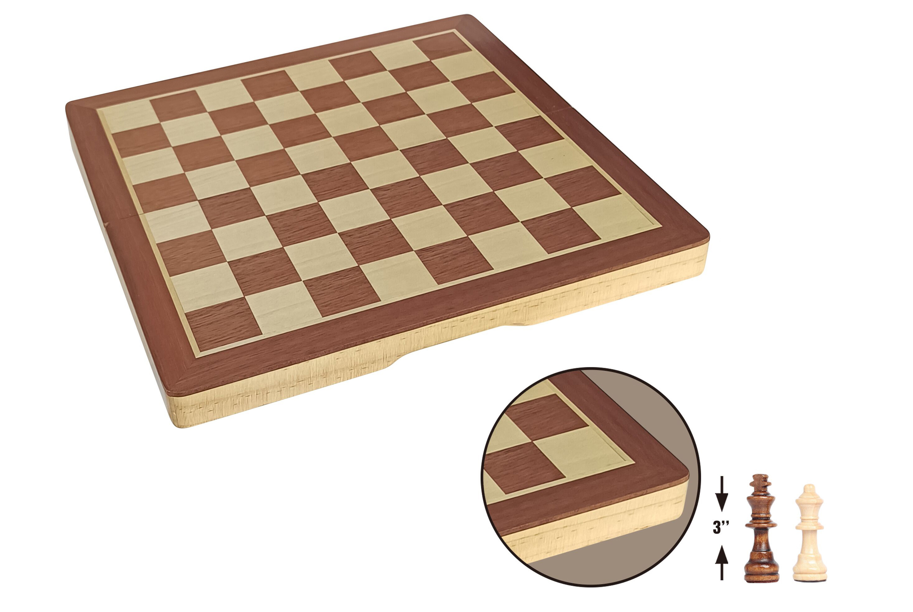 Šachy dřevěné. Velikost šachovnice 39cm. Šachovnice má magnetické zavírání i figurky. Každá figurka má zespodu filc pro tichý pohyb po šachovnici. Figurky lze uložit dovnitř do šachovnice.