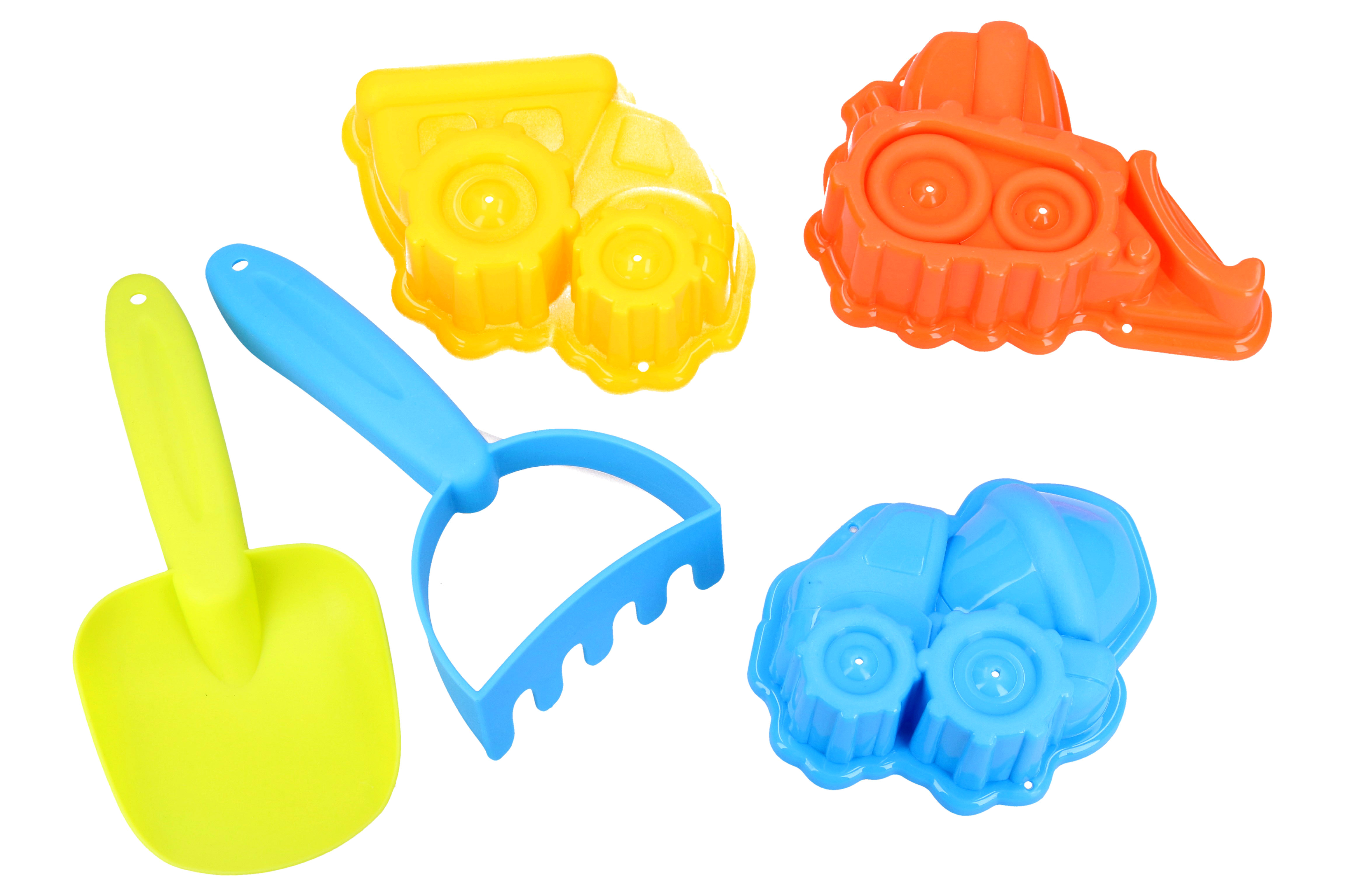 Barevný plastový set na písek ti pomůže postavit parádní hrad i bábovičky! Set  je vhodný na pískoviště, k vodě i na zahradu.  Obsah balení: lopatka hrabičky 3 formičky Doporučený věk: od 3 let