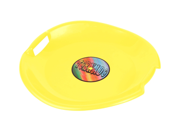 Sáňkovací talíř Tornado Super žlutá. Průměr 54 cm, výška 8 cm. Pro děti i dospělé, řešení umožňující rotaci během jízdy praktické, skladné, odolné, protiskluzová úprava držadel. Váha 0,5 kg. Nosnost 50 kg. Provozní teplota -25 až 50 °C.