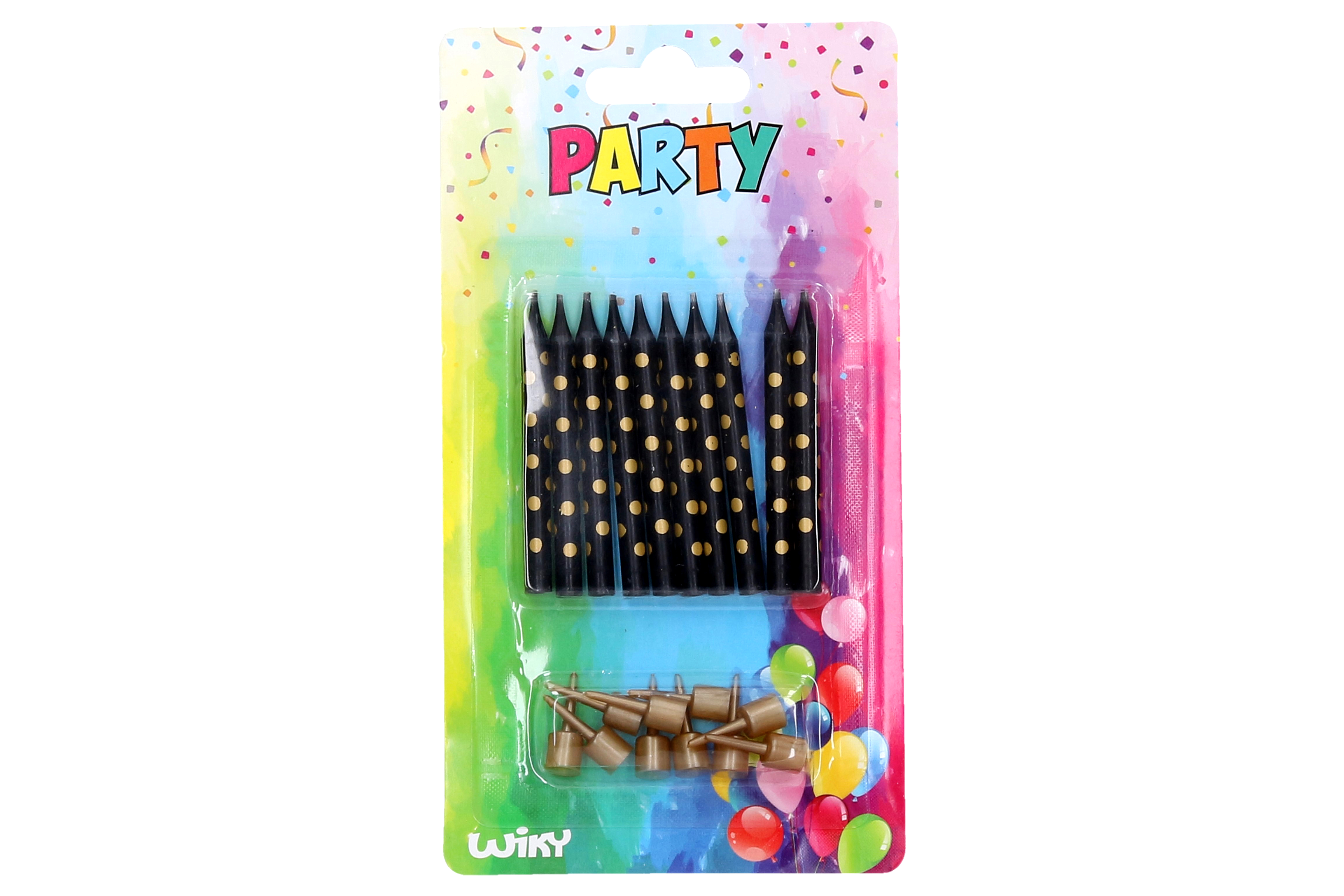 Svíčky 10ks + stojánky 10ks zlaté tečky.