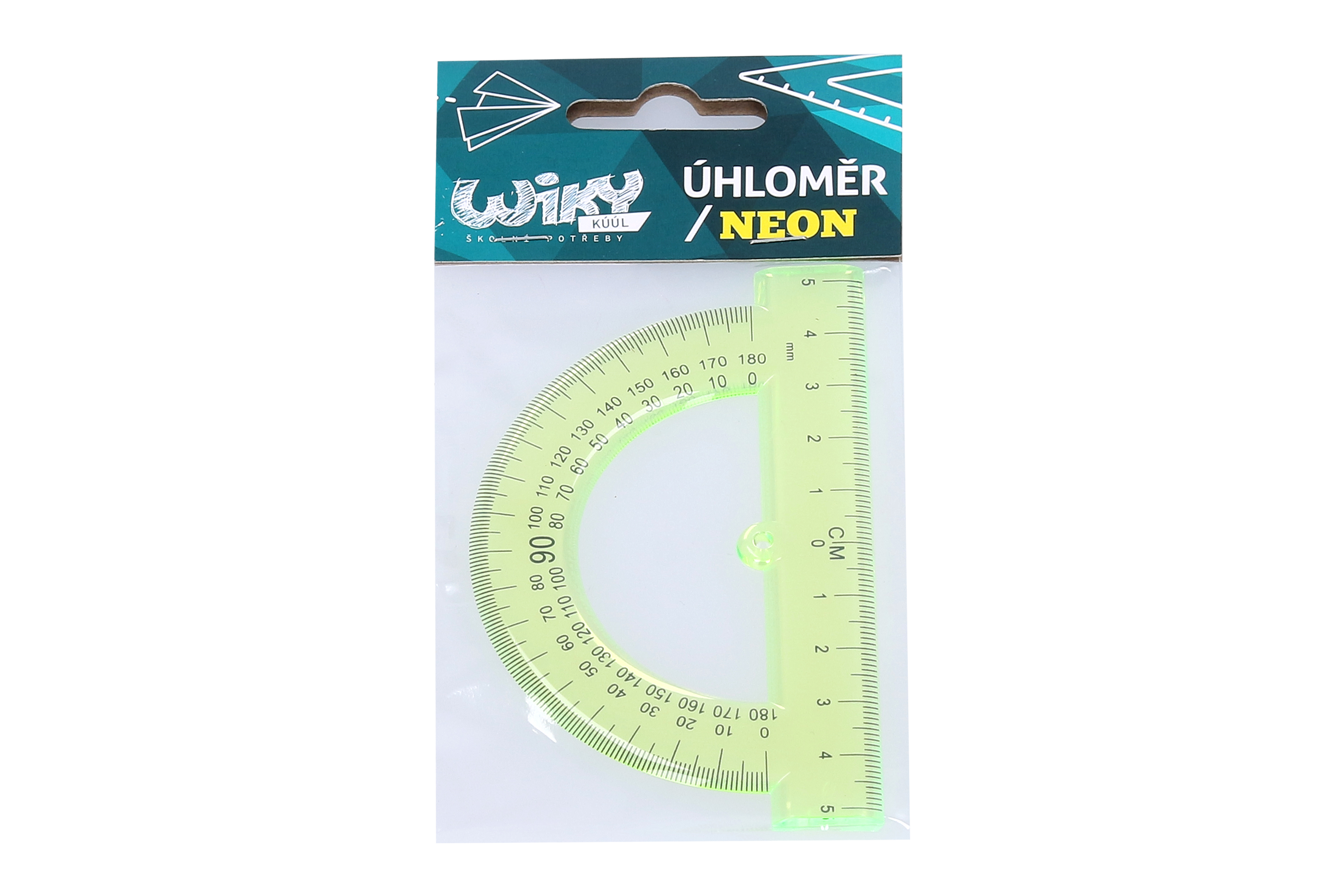 Průhledný úhloměr malý vhodný do hodin matematiky, geometrie a dalších předmětů.