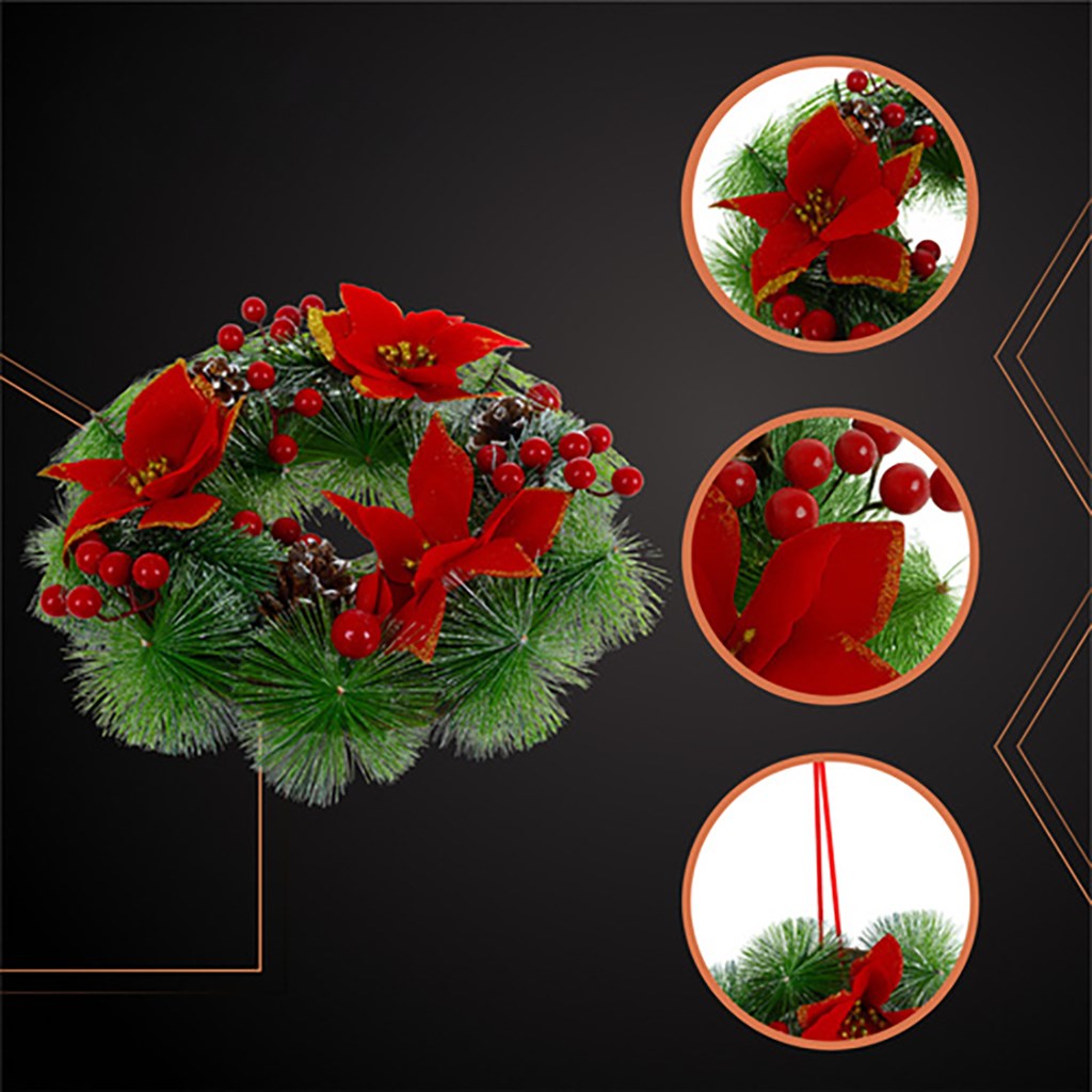 Věnec okamžitě navodí vánoční atmosféru – stačí ho zavěsit na dveře nebo položit na stůl a rázem je tu útulná sváteční nálada bez námahy. Husté zelené větvičky, červené bobule a šišky působí jako živé, ale nevyžadují žádnou údržbu. Tato dekorace okouzlí návštěvy a dodá eleganci celému interiéru po celé svátky.