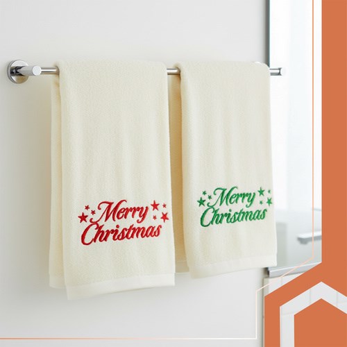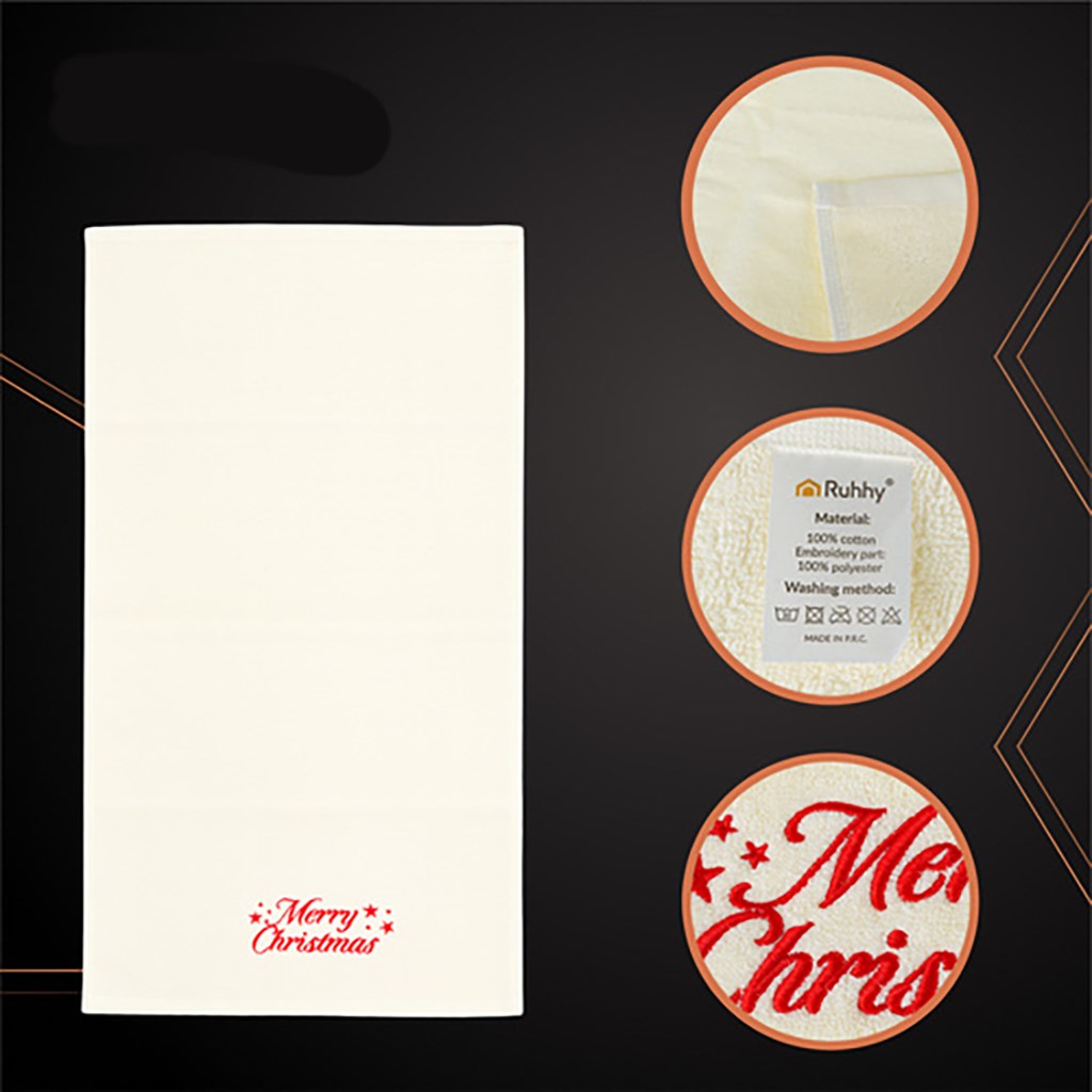 2 vánoční ručníky – bílé s výšivkou „Merry Christmas“