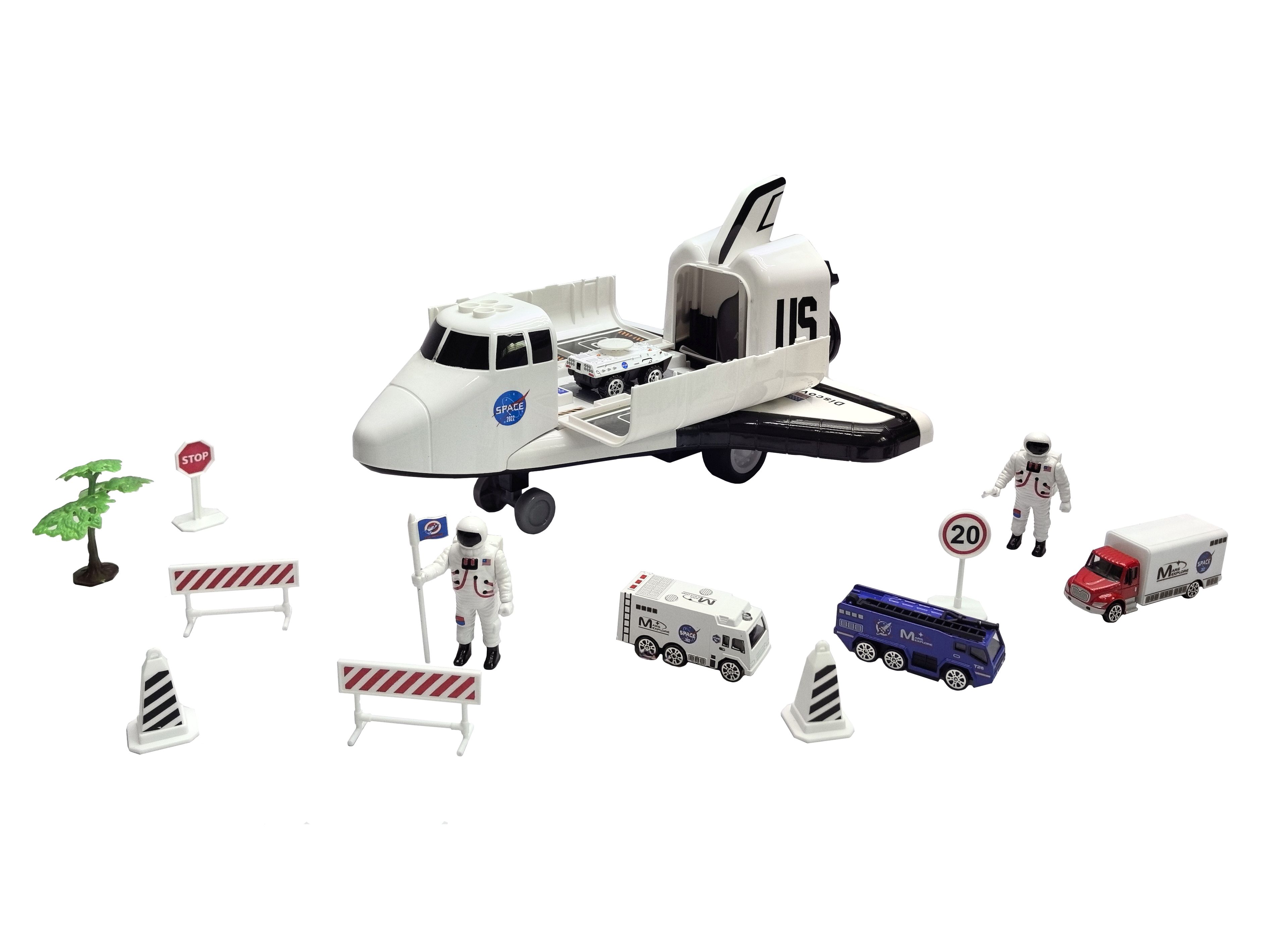Vesmírná loď set. Obsahuje vesmírnou loď 36cm, 2x postavička 8cm, 4x auto, dopravní značky. Vesmírná loď je otevírací.
