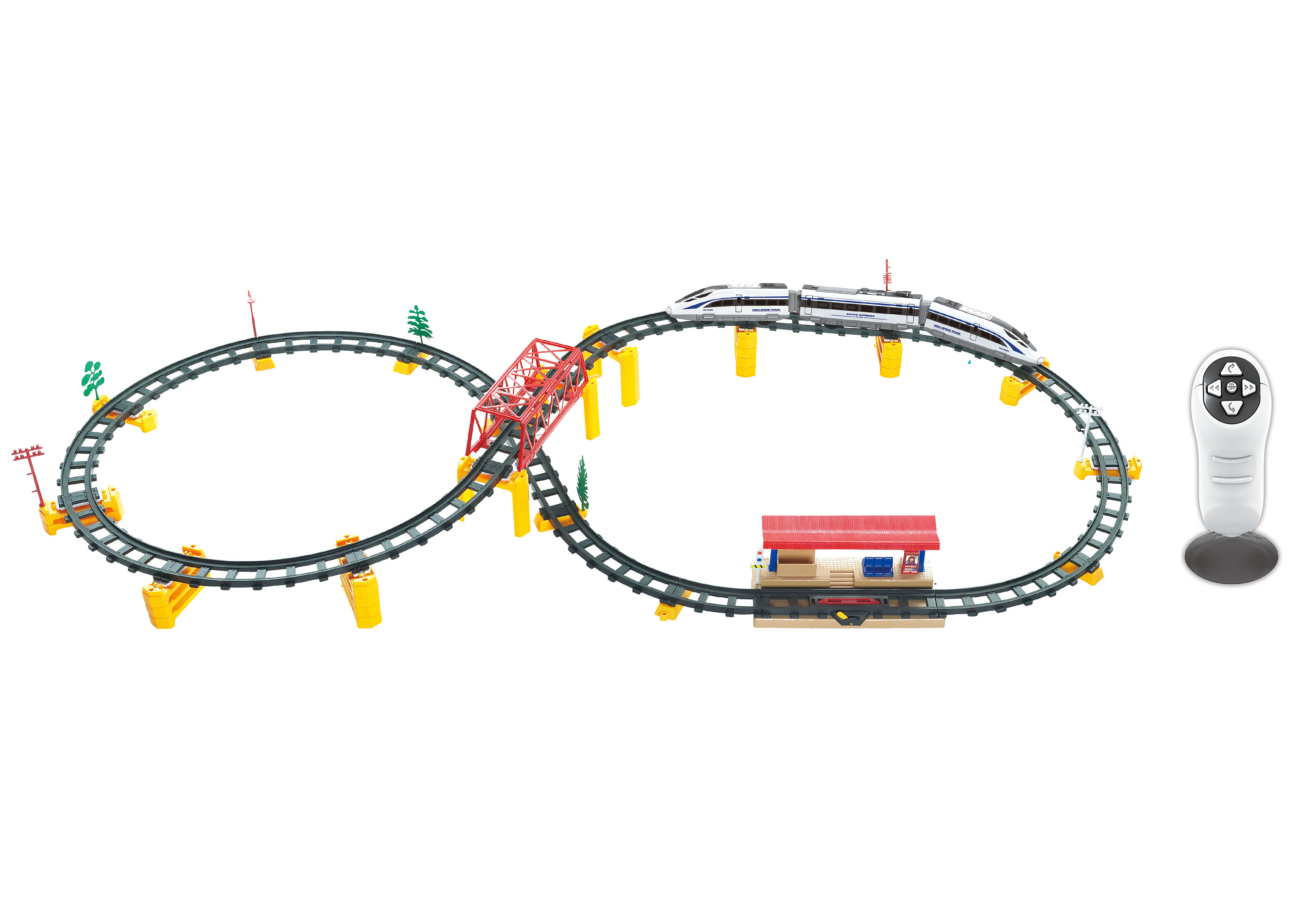 Vlak RC na dálkové ovládání s dráhou. Rozměry sestavené trati 146x64 cm. Délka trati, 397 cm. Vlak vydává světelné a zvukové efekty. Set obsahuje 81 dílů. Infračervený port. Vagóny jsou propojeny magnety. Vlak - 3xAA, nejsou součástí. Ovladač - 2xAA, nejsou součástí. ON/OFF spínač uprostřed ovladače. Pohyb po směru hodinových ručiček - levé tlačítko svítí, zmáčkni horní tlačítko. Pohyb proti směru hodinových ručiček - pravé tlačítko svítí, stiskni dolní tlačítko. Návod na sestavení na zadní straně obalu.