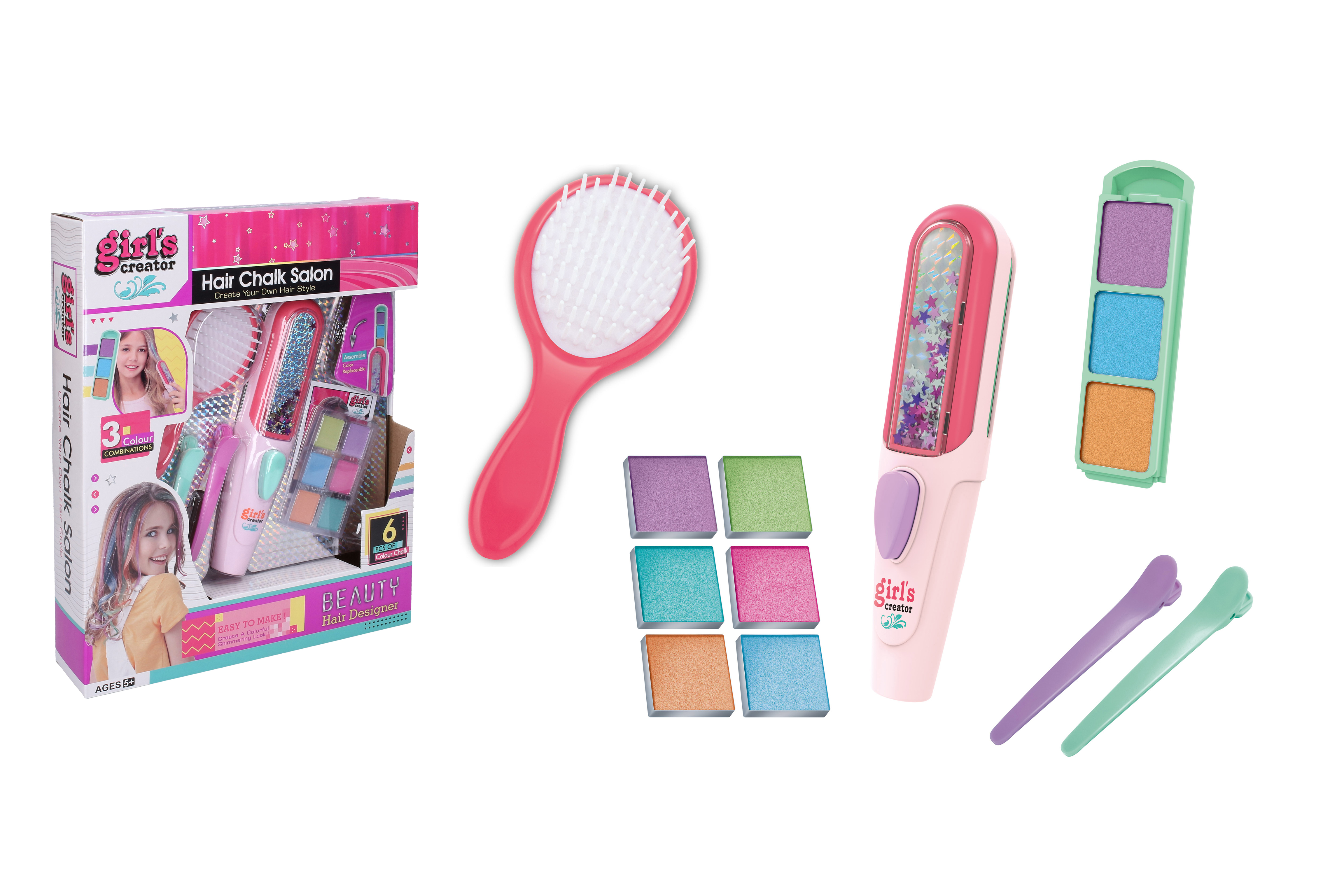 Vlasové studio set. Obsah balení - kartáč, sponky, křídy na vlasy, aplikátor barev.