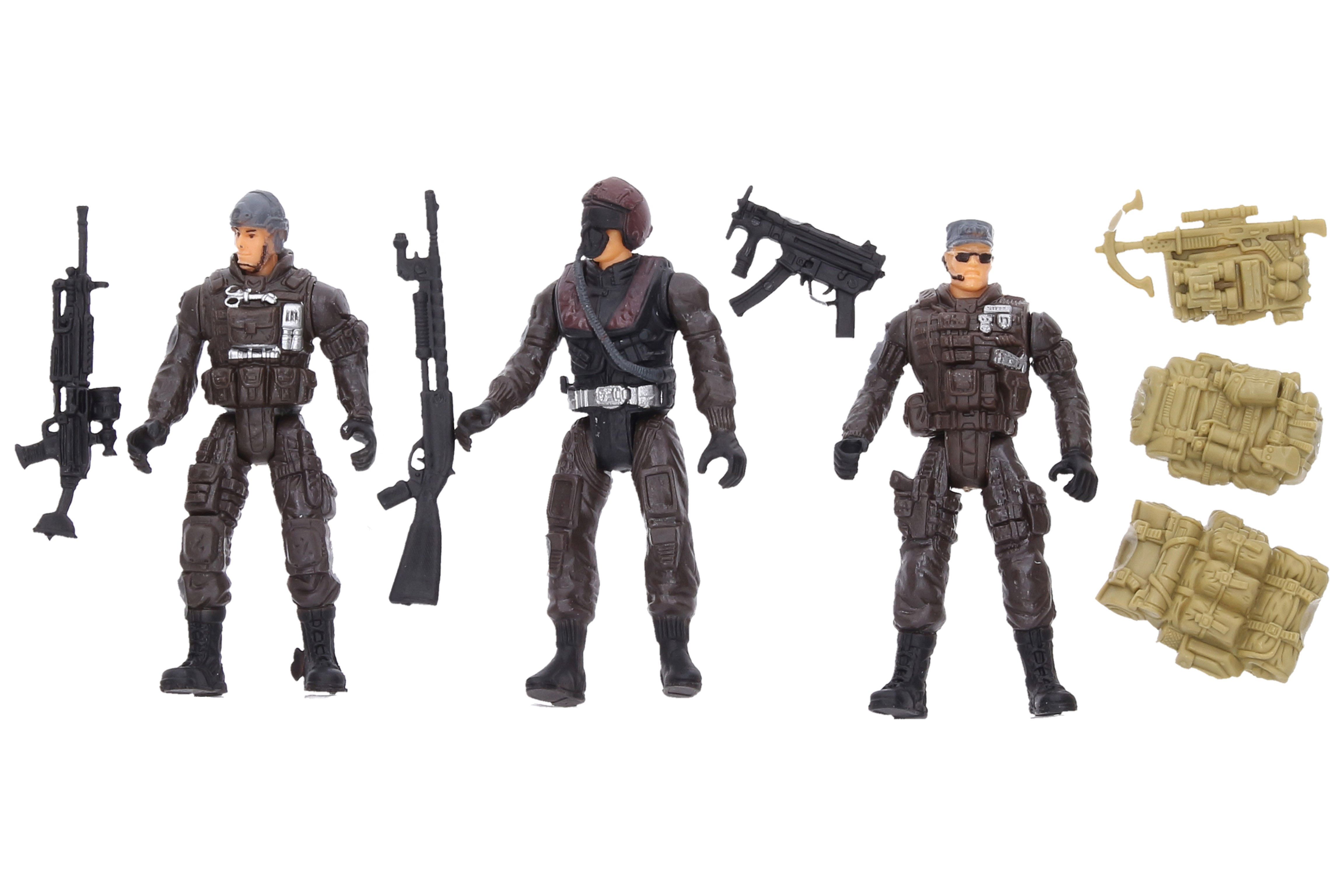 Vojáci sada figurek 11cm a zbraní. Obsah balení - 3 x figurka vojáka 11 cm, 3x batoh s výstrojí, 4x zbraň.
