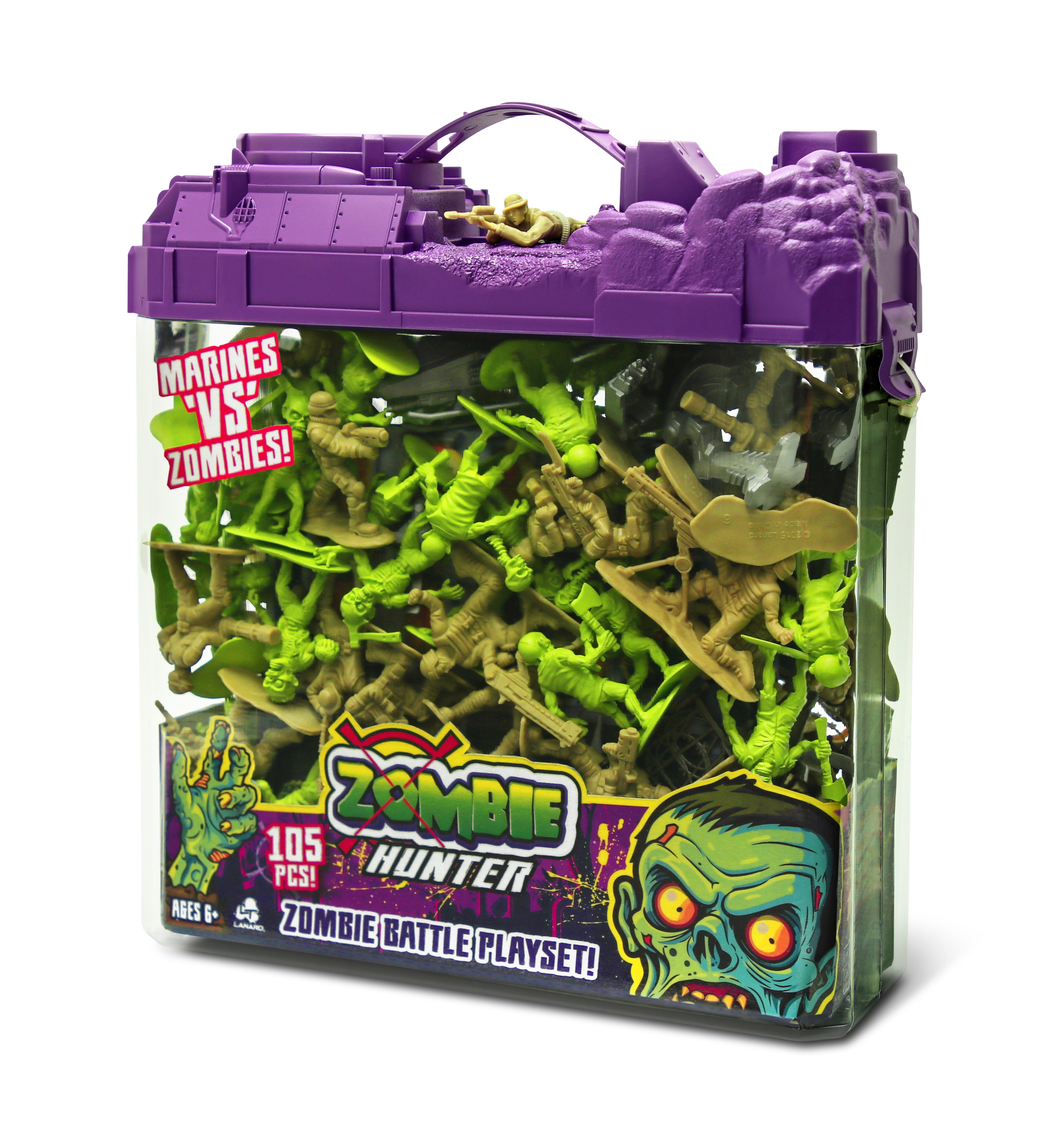 Zombie Hunter Vojáci vs zombie figurky set. Sada obsahuje celkem 105 ks vojáků, zombie, a vojenské techniky. Víko krabičky je zároveň vojenskou základnou.